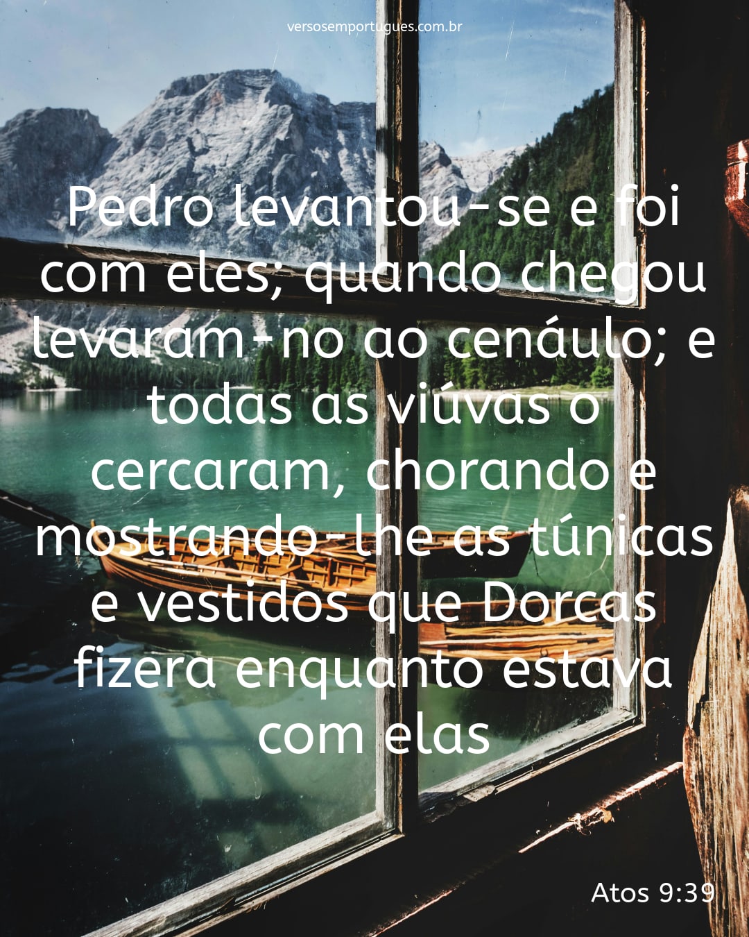 Pedro levantou-se e foi com eles; quando chegou, levaram-no ao cenáulo; e todas as viúvas o cercaram, chorando e mostrando-lhe as túnicas e vestidos que Dorcas fizera enquanto estava com elas.