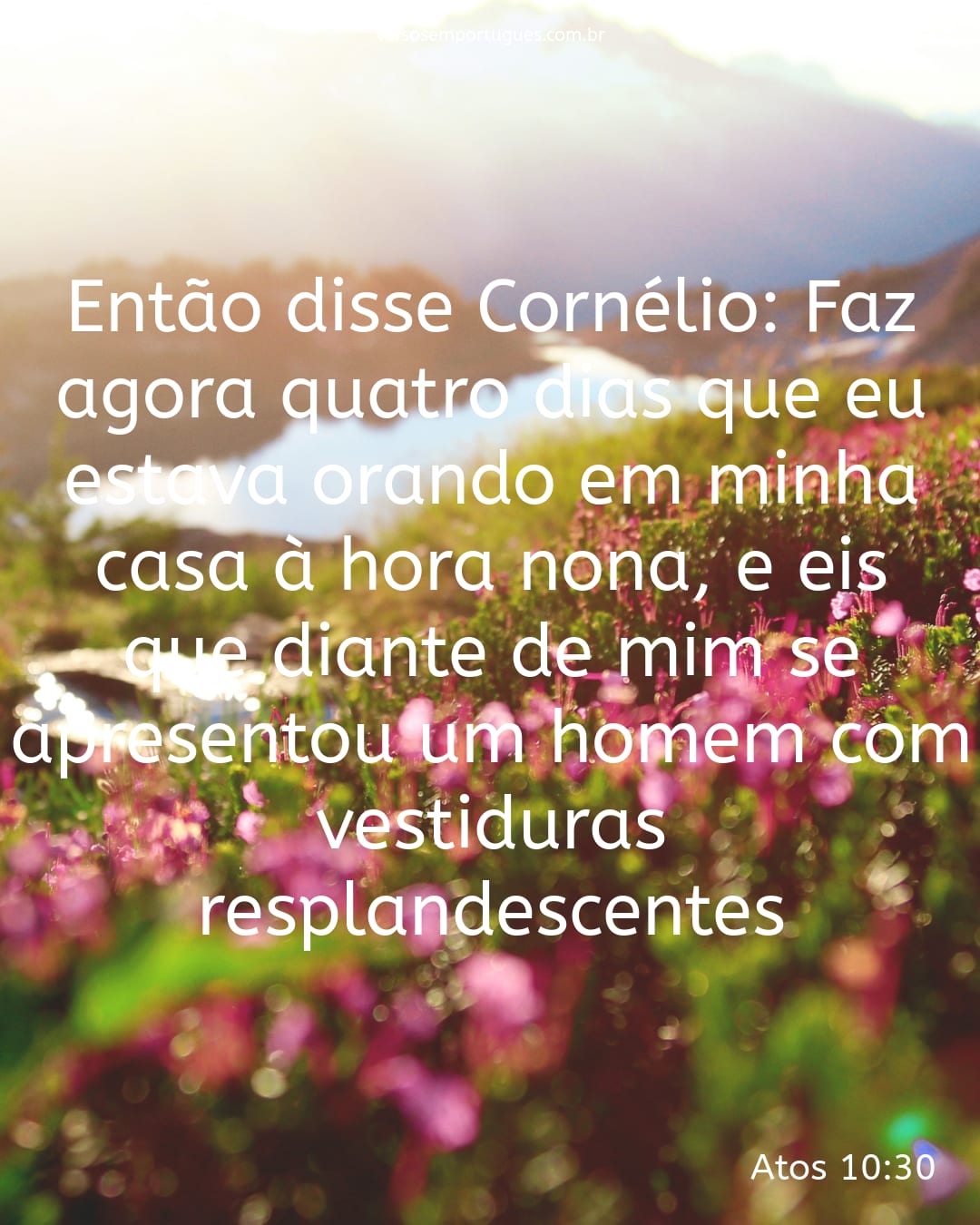 Então disse Cornélio: Faz agora quatro dias que eu estava orando em minha casa à hora nona, e eis que diante de mim se apresentou um homem com vestiduras resplandescentes,
