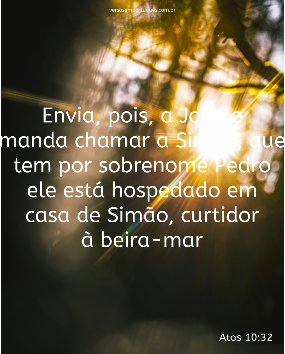 Envia, pois, a Jope e manda chamar a Simão, que tem por sobrenome Pedro; ele está hospedado em casa de Simão, curtidor, à beira-mar.