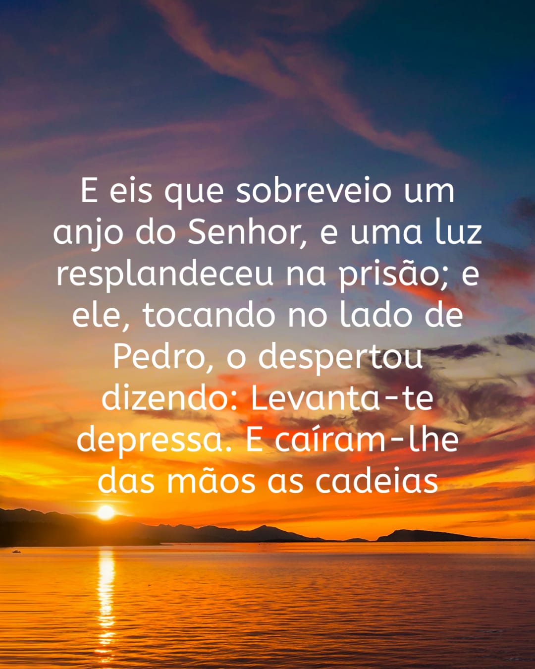 E eis que sobreveio um anjo do Senhor, e uma luz resplandeceu na prisão; e ele, tocando no lado de Pedro, o despertou, dizendo: Levanta-te depressa. E caíram-lhe das mãos as cadeias.