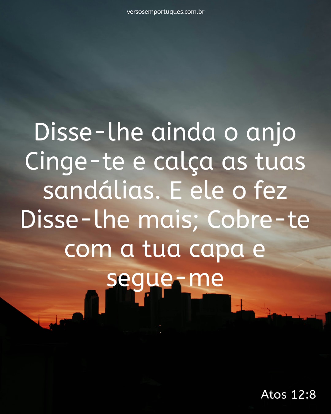 Disse-lhe ainda o anjo: Cinge-te e calça as tuas sandálias. E ele o fez. Disse-lhe mais; Cobre-te com a tua capa e segue-me.