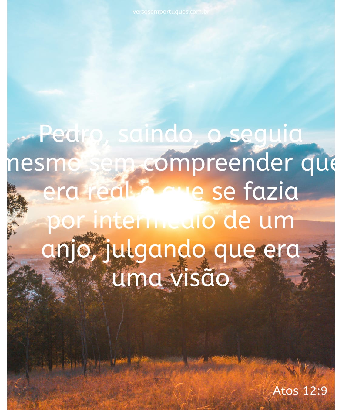 Pedro, saindo, o seguia, mesmo sem compreender que era real o que se fazia por intermédio de um anjo, julgando que era uma visão.
