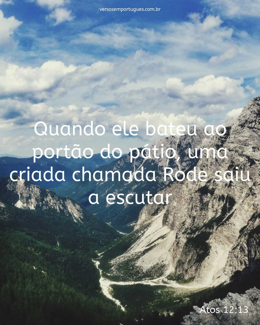 e, reconhecendo a voz de Pedro, de gozo não abriu o portão, mas, correndo para dentro, anunciou que Pedro estava lá fora.