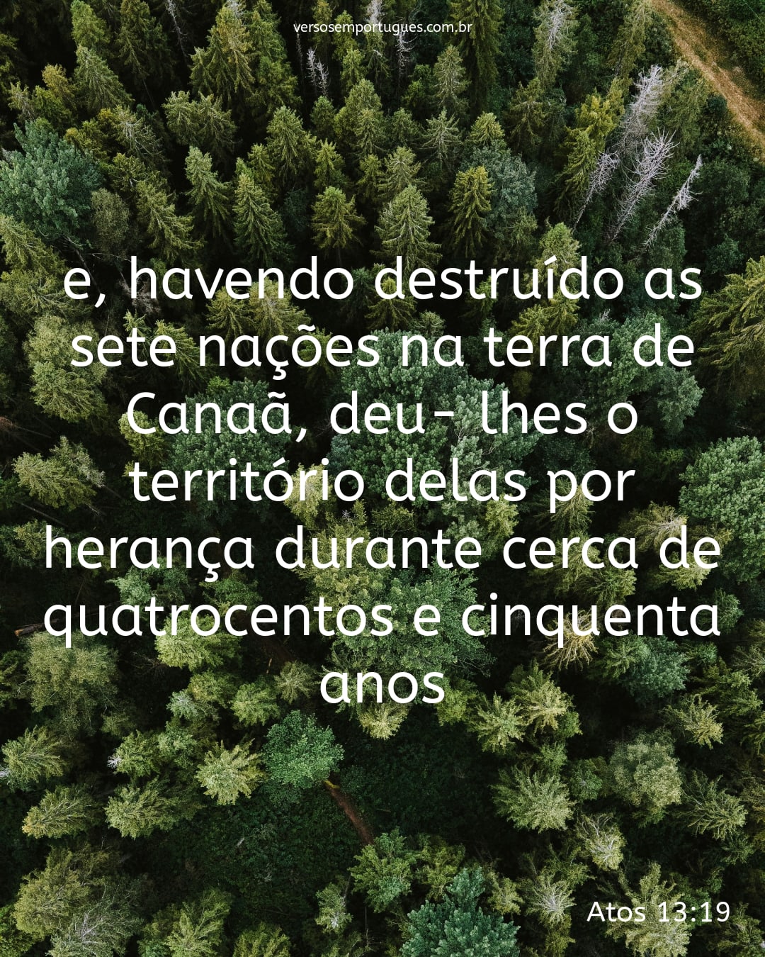 e, havendo destruído as sete nações na terra de Canaã, deu- lhes o território delas por herança durante cerca de quatrocentos e cinquenta anos.