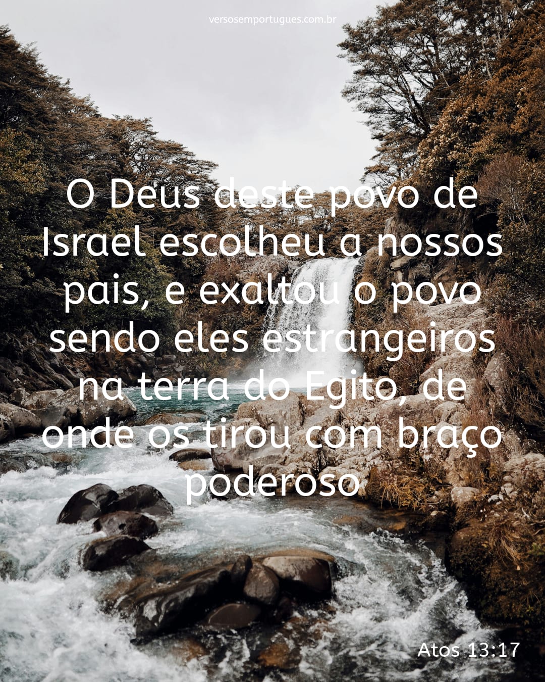 O Deus deste povo de Israel escolheu a nossos pais, e exaltou o povo, sendo eles estrangeiros na terra do Egito, de onde os tirou com braço poderoso,
