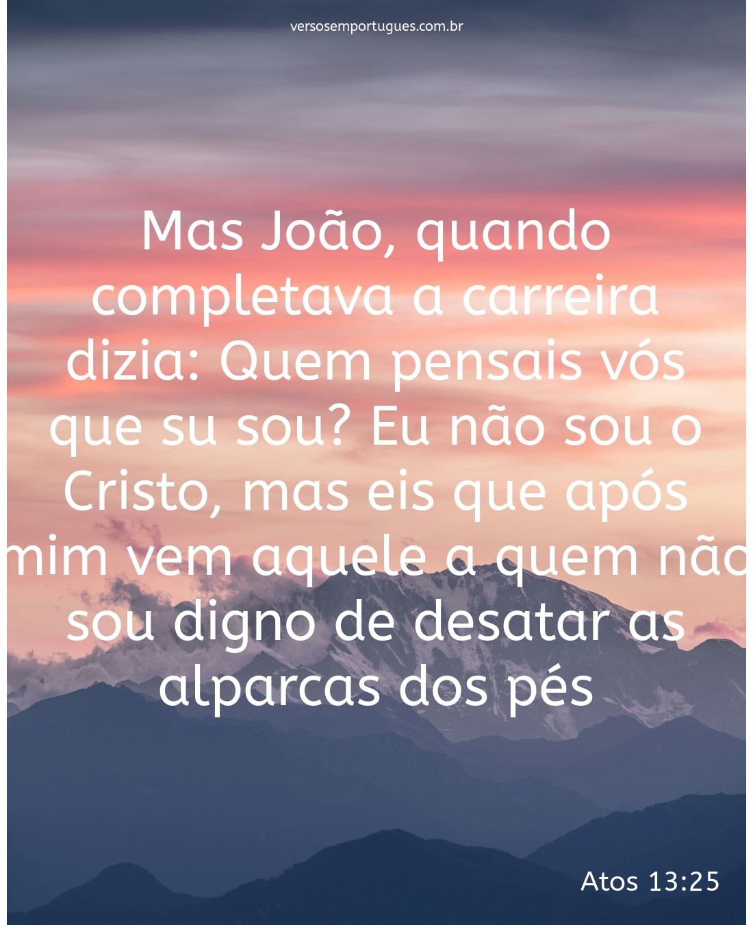 Mas João, quando completava a carreira, dizia: Quem pensais vós que su sou? Eu não sou o Cristo, mas eis que após mim vem aquele a quem não sou digno de desatar as alparcas dos pés.
