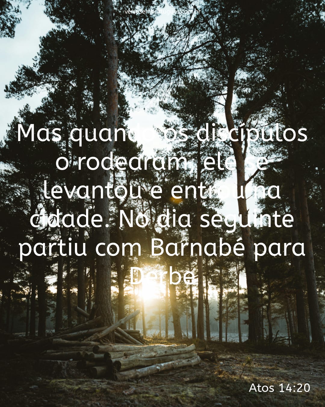 Mas quando os discípulos o rodearam, ele se levantou e entrou na cidade. No dia seguinte partiu com Barnabé para Derbe.