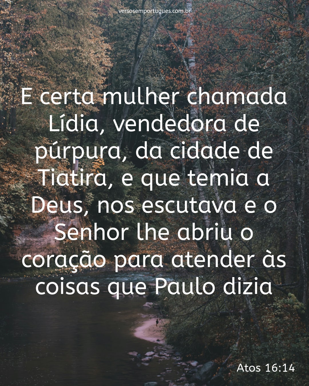E certa mulher chamada Lídia, vendedora de púrpura, da cidade de Tiatira, e que temia a Deus, nos escutava e o Senhor lhe abriu o coração para atender às coisas que Paulo dizia.