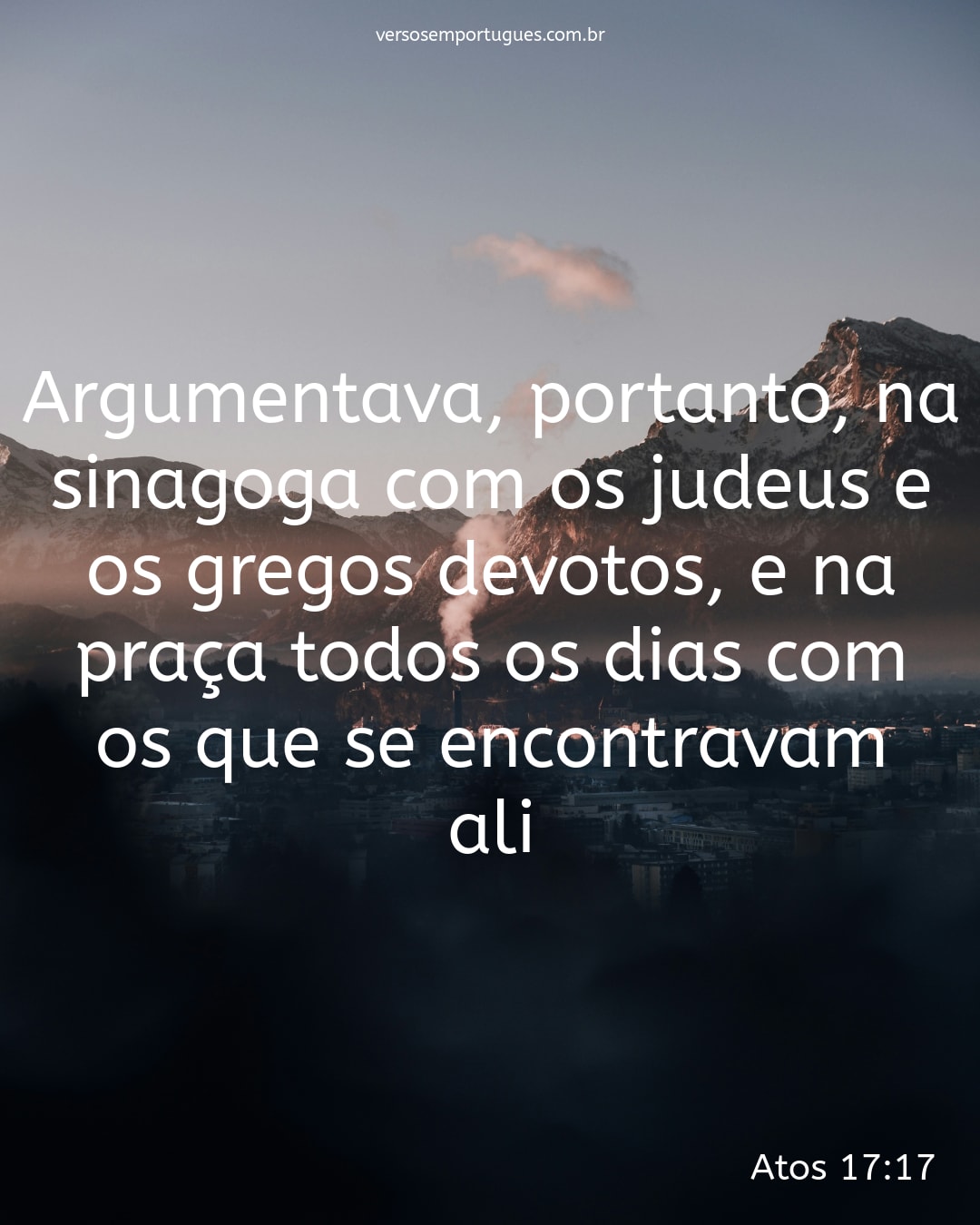 Argumentava, portanto, na sinagoga com os judeus e os gregos devotos, e na praça todos os dias com os que se encontravam ali.