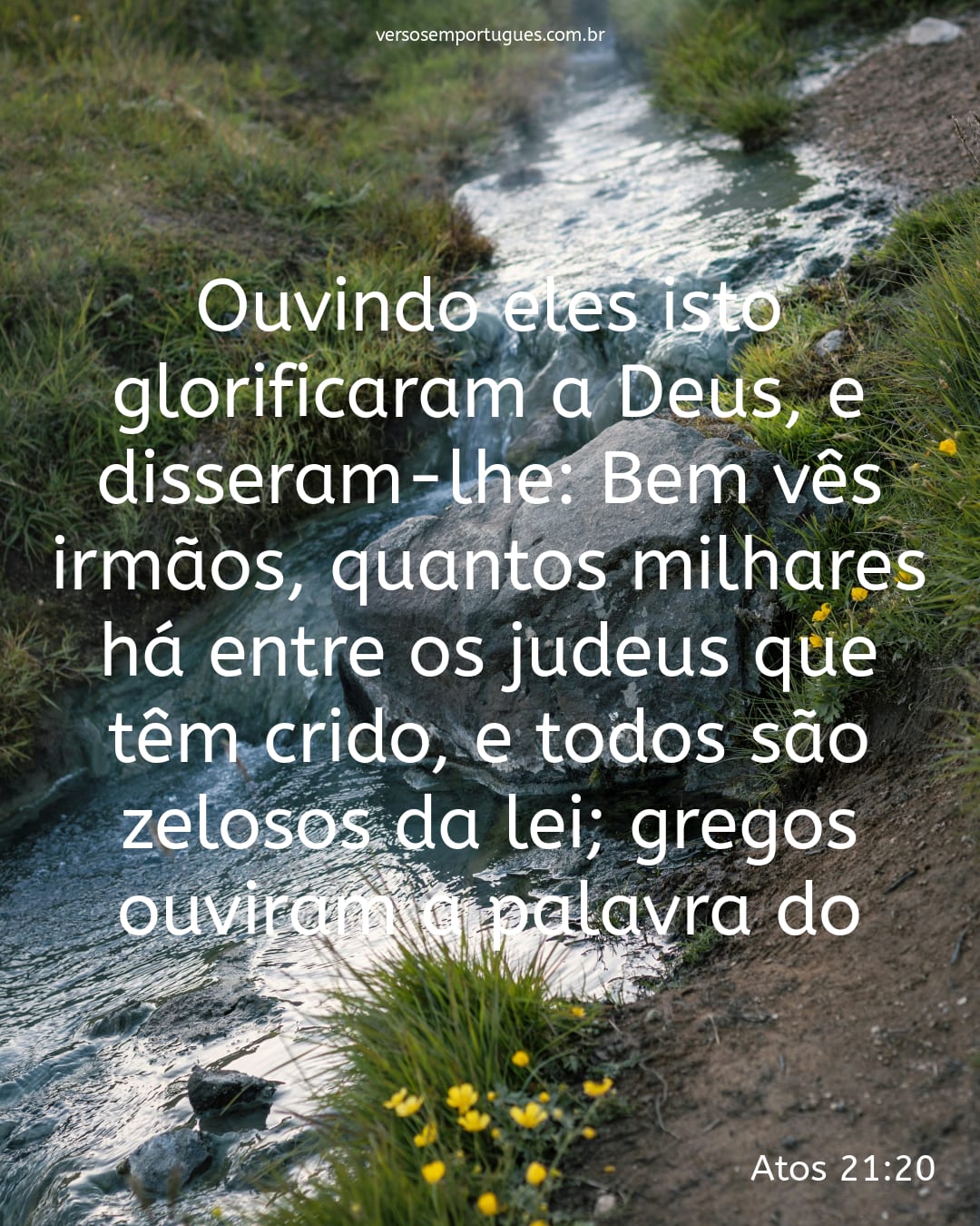 Ouvindo eles isto, glorificaram a Deus, e disseram-lhe: Bem vês, irmãos, quantos milhares há entre os judeus que têm crido, e todos são zelosos da lei; gregos, ouviram a palavra do