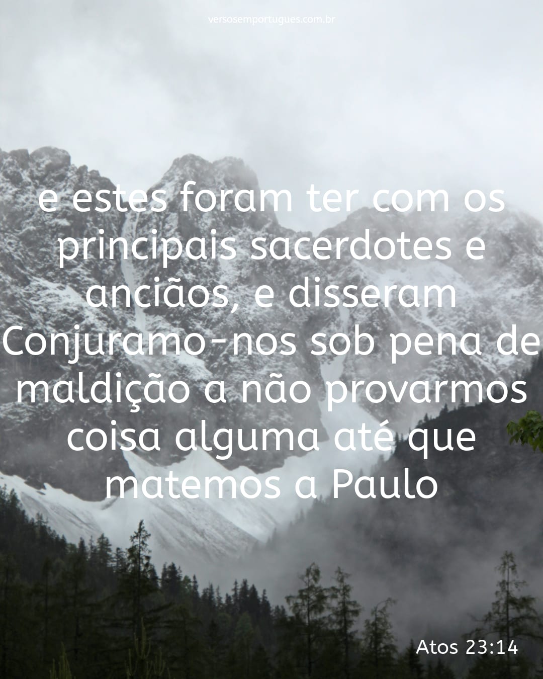 e estes foram ter com os principais sacerdotes e anciãos, e disseram: Conjuramo-nos sob pena de maldição a não provarmos coisa alguma até que matemos a Paulo.