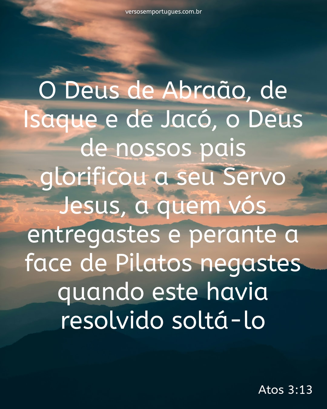 O Deus de Abraão, de Isaque e de Jacó, o Deus de nossos pais, glorificou a seu Servo Jesus, a quem vós entregastes e perante a face de Pilatos negastes, quando este havia resolvido soltá-lo.
