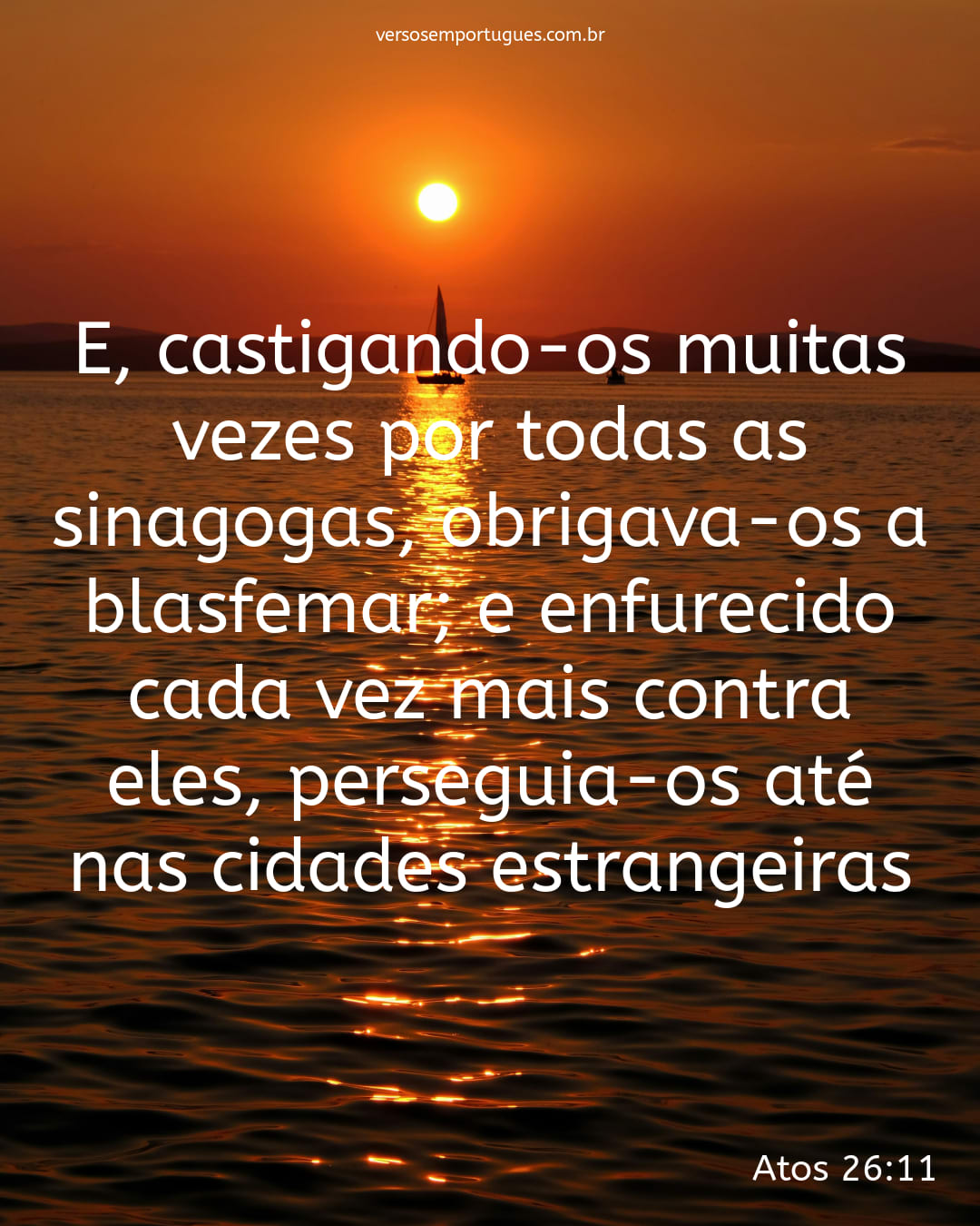 E, castigando-os muitas vezes por todas as sinagogas, obrigava-os a blasfemar; e enfurecido cada vez mais contra eles, perseguia-os até nas cidades estrangeiras.