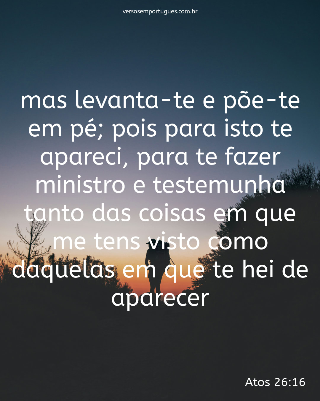 mas levanta-te e põe-te em pé; pois para isto te apareci, para te fazer ministro e testemunha tanto das coisas em que me tens visto como daquelas em que te hei de aparecer;