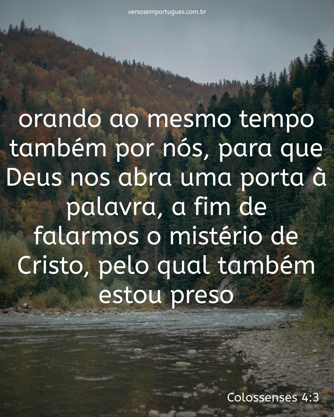 orando ao mesmo tempo também por nós, para que Deus nos abra uma porta à palavra, a fim de falarmos o mistério de Cristo, pelo qual também estou preso,