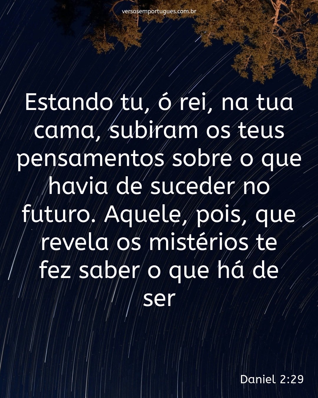 Estando tu, ó rei, na tua cama, subiram os teus pensamentos sobre o que havia de suceder no futuro. Aquele, pois, que revela os mistérios te fez saber o que há de ser.
