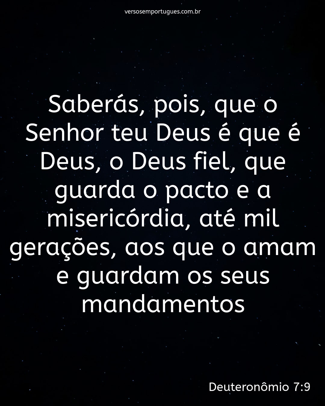 Saberás, pois, que o Senhor teu Deus é que é Deus, o Deus fiel, que guarda o pacto e a misericórdia, até mil gerações, aos que o amam e guardam os seus mandamentos;