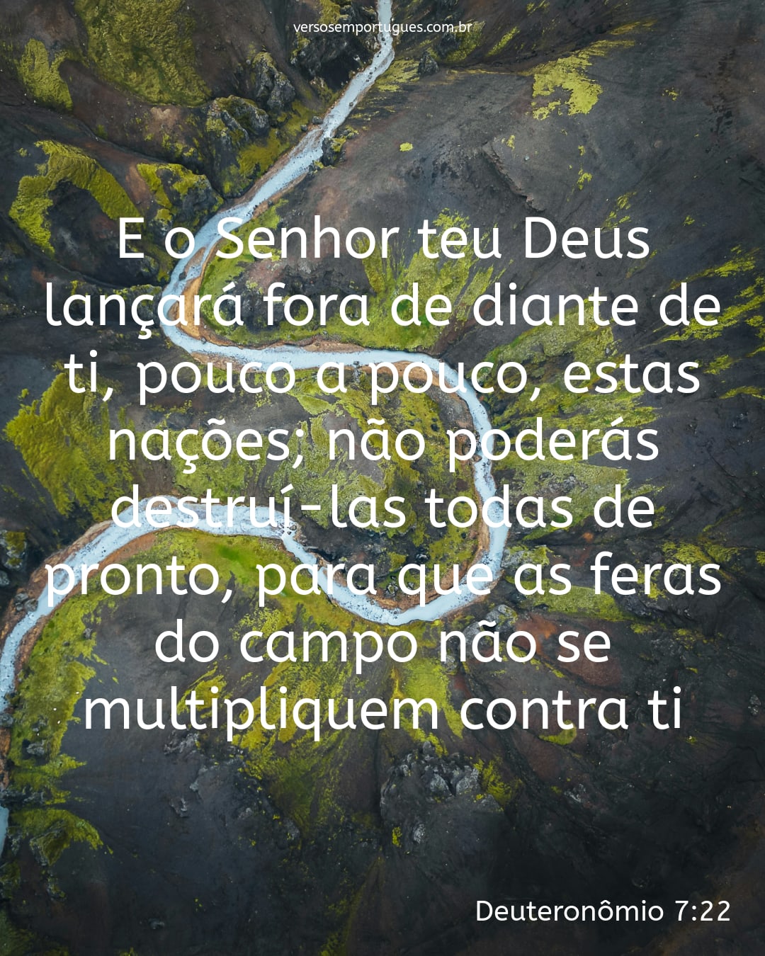 E o Senhor teu Deus lançará fora de diante de ti, pouco a pouco, estas nações; não poderás destruí-las todas de pronto, para que as feras do campo não se multipliquem contra ti.