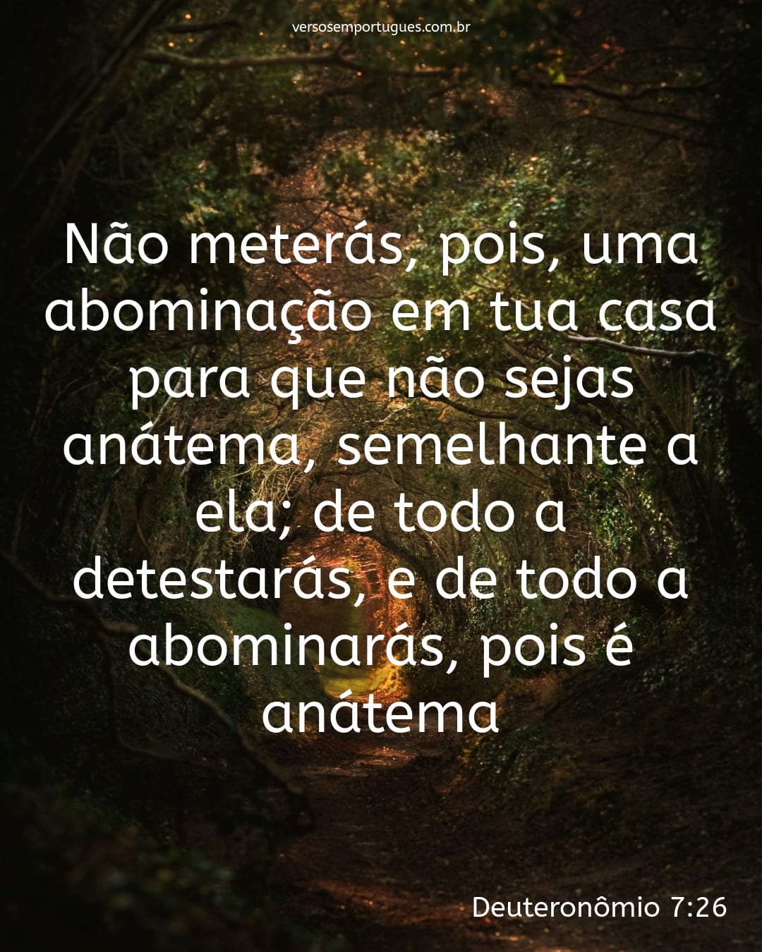 Não meterás, pois, uma abominação em tua casa, para que não sejas anátema, semelhante a ela; de todo a detestarás, e de todo a abominarás, pois é anátema.