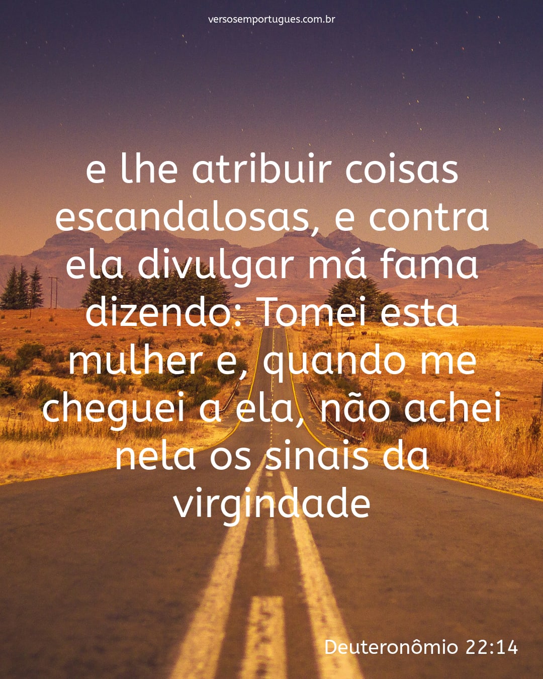 e lhe atribuir coisas escandalosas, e contra ela divulgar má fama, dizendo: Tomei esta mulher e, quando me cheguei a ela, não achei nela os sinais da virgindade;