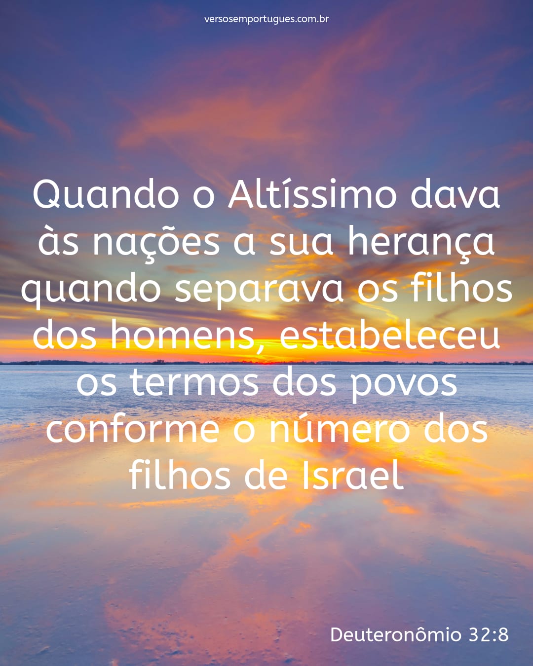 Quando o Altíssimo dava às nações a sua herança, quando separava os filhos dos homens, estabeleceu os termos dos povos conforme o número dos filhos de Israel.