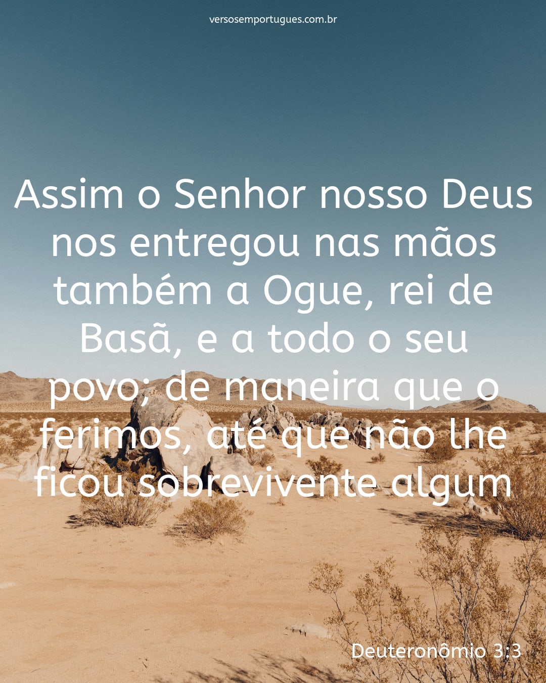 Assim o Senhor nosso Deus nos entregou nas mãos também a Ogue, rei de Basã, e a todo o seu povo; de maneira que o ferimos, até que não lhe ficou sobrevivente algum.