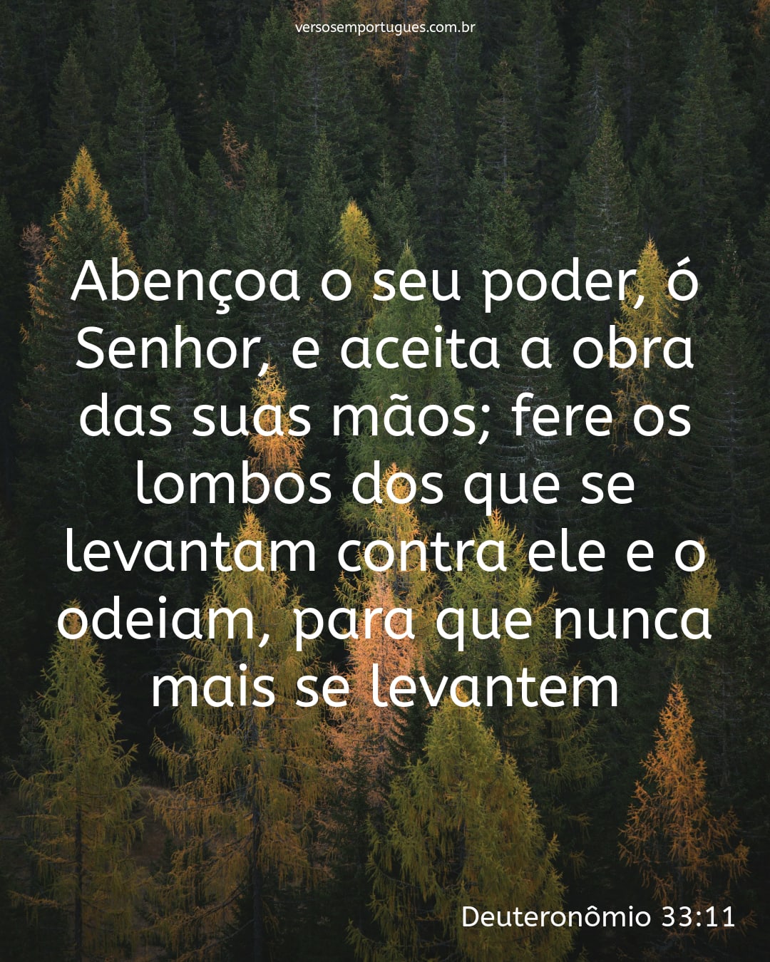 Abençoa o seu poder, ó Senhor, e aceita a obra das suas mãos; fere os lombos dos que se levantam contra ele e o odeiam, para que nunca mais se levantem.