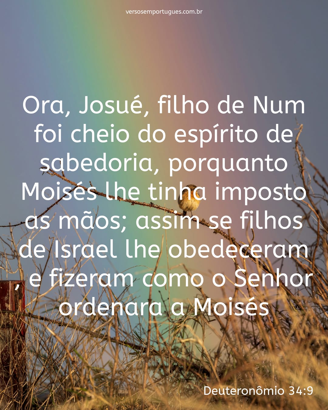 Ora, Josué, filho de Num, foi cheio do espírito de sabedoria, porquanto Moisés lhe tinha imposto as mãos; assim se filhos de Israel lhe obedeceram , e fizeram como o Senhor ordenara a Moisés.