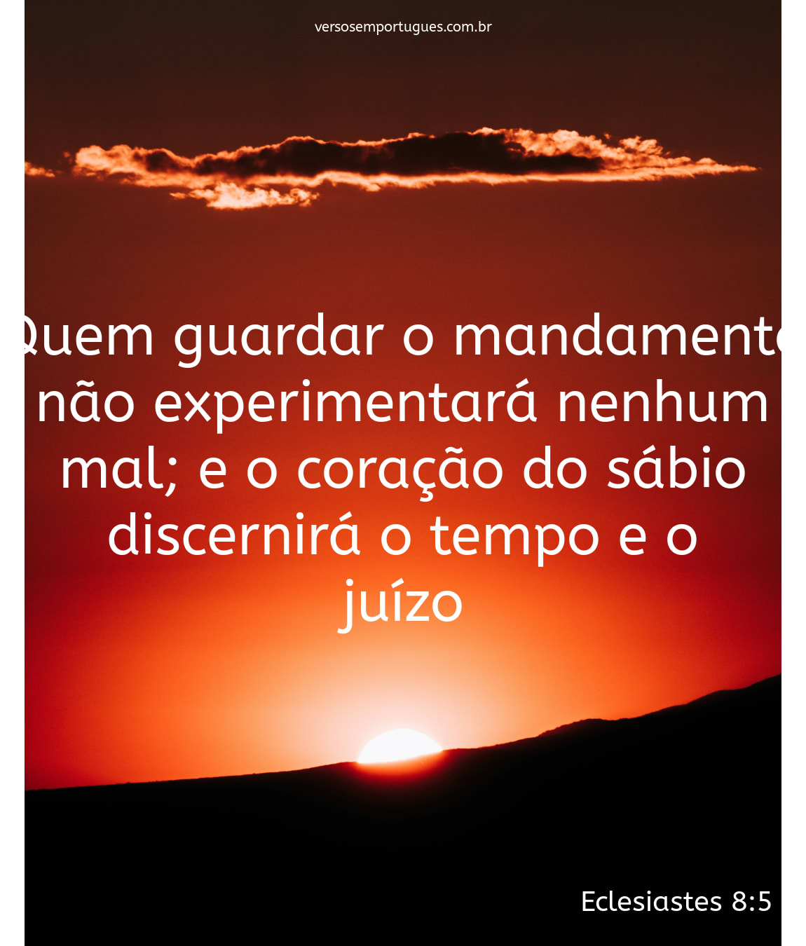 Quem guardar o mandamento não experimentará nenhum mal; e o coração do sábio discernirá o tempo e o juízo.