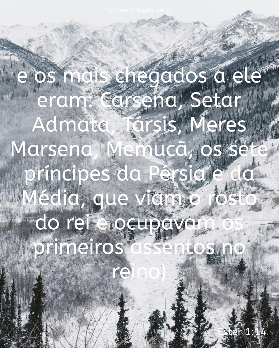 e os mais chegados a ele eram: Carsena, Setar, Admata, Társis, Meres, Marsena, Memucã, os sete príncipes da Pérsia e da Média, que viam o rosto do rei e ocupavam os primeiros assentos no reino)