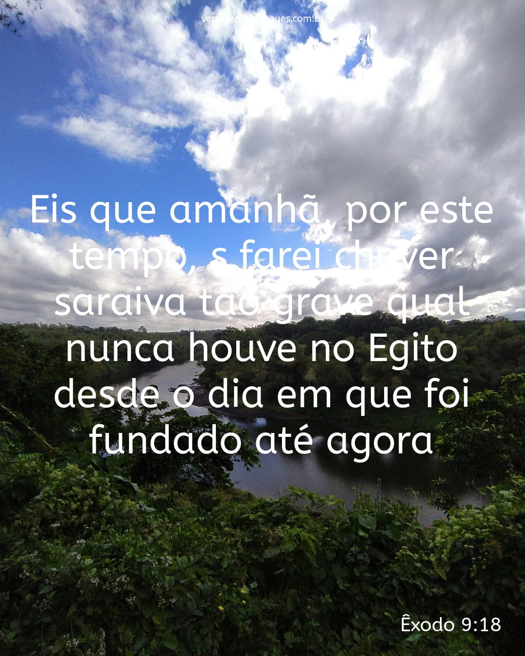 Eis que amanhã, por este tempo, s farei chover saraiva tão grave qual nunca houve no Egito, desde o dia em que foi fundado até agora.