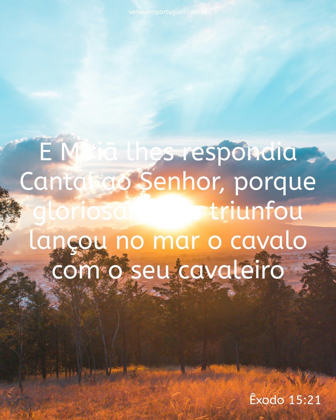 E Miriã lhes respondia: Cantai ao Senhor, porque gloriosamente triunfou; lançou no mar o cavalo com o seu cavaleiro.
