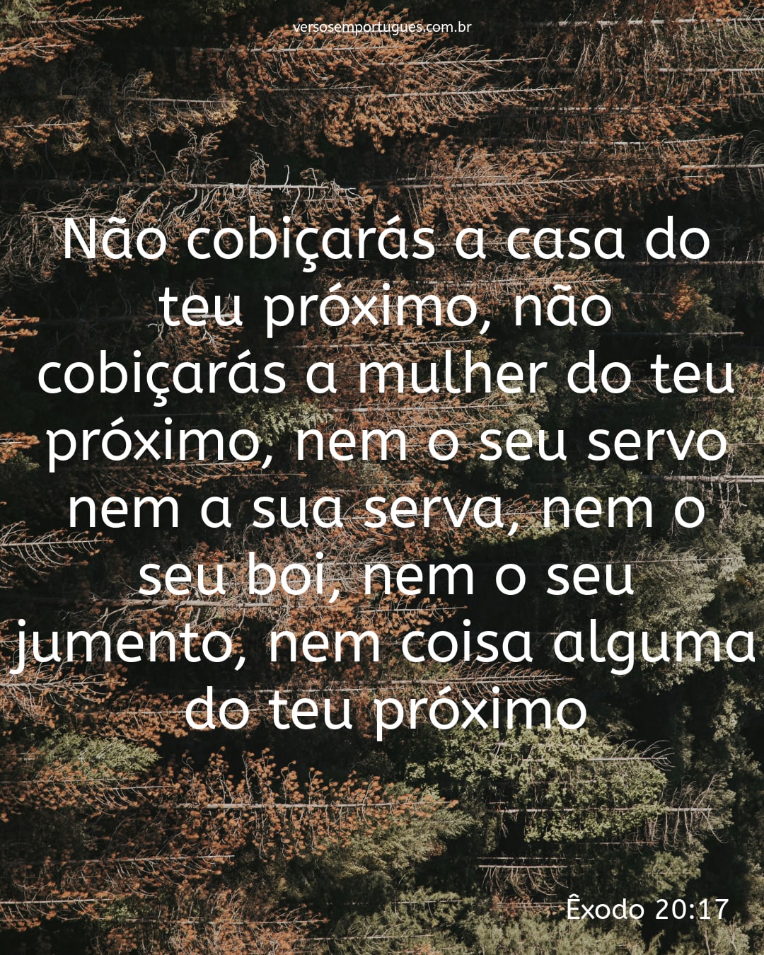 Não cobiçarás a casa do teu próximo, não cobiçarás a mulher do teu próximo, nem o seu servo, nem a sua serva, nem o seu boi, nem o seu jumento, nem coisa alguma do teu próximo.