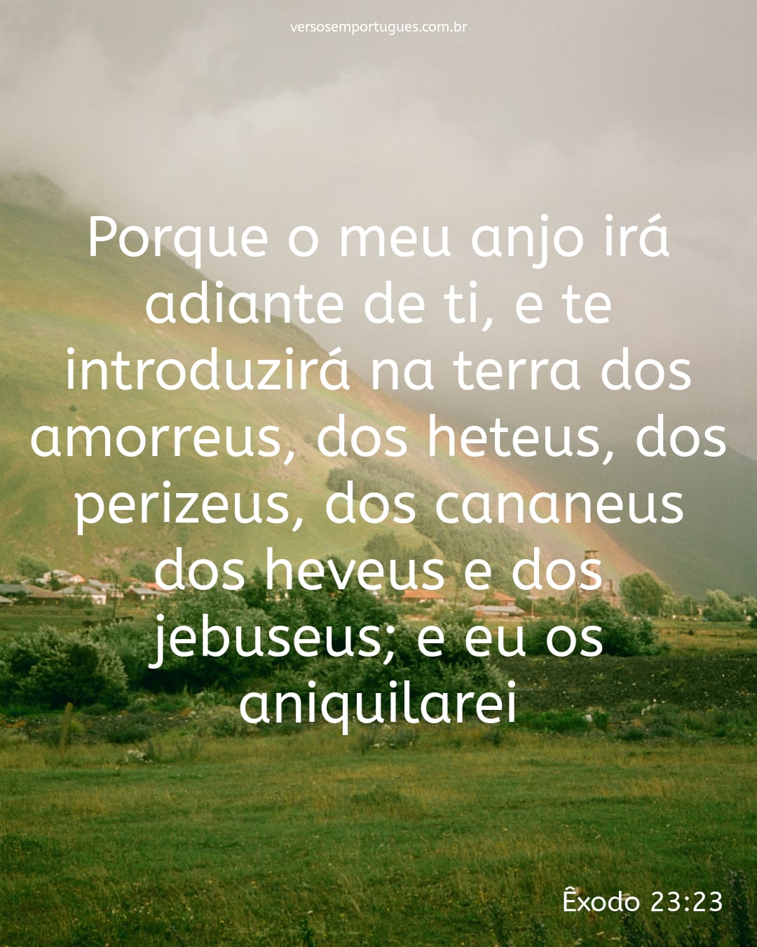 Porque o meu anjo irá adiante de ti, e te introduzirá na terra dos amorreus, dos heteus, dos perizeus, dos cananeus, dos heveus e dos jebuseus; e eu os aniquilarei.