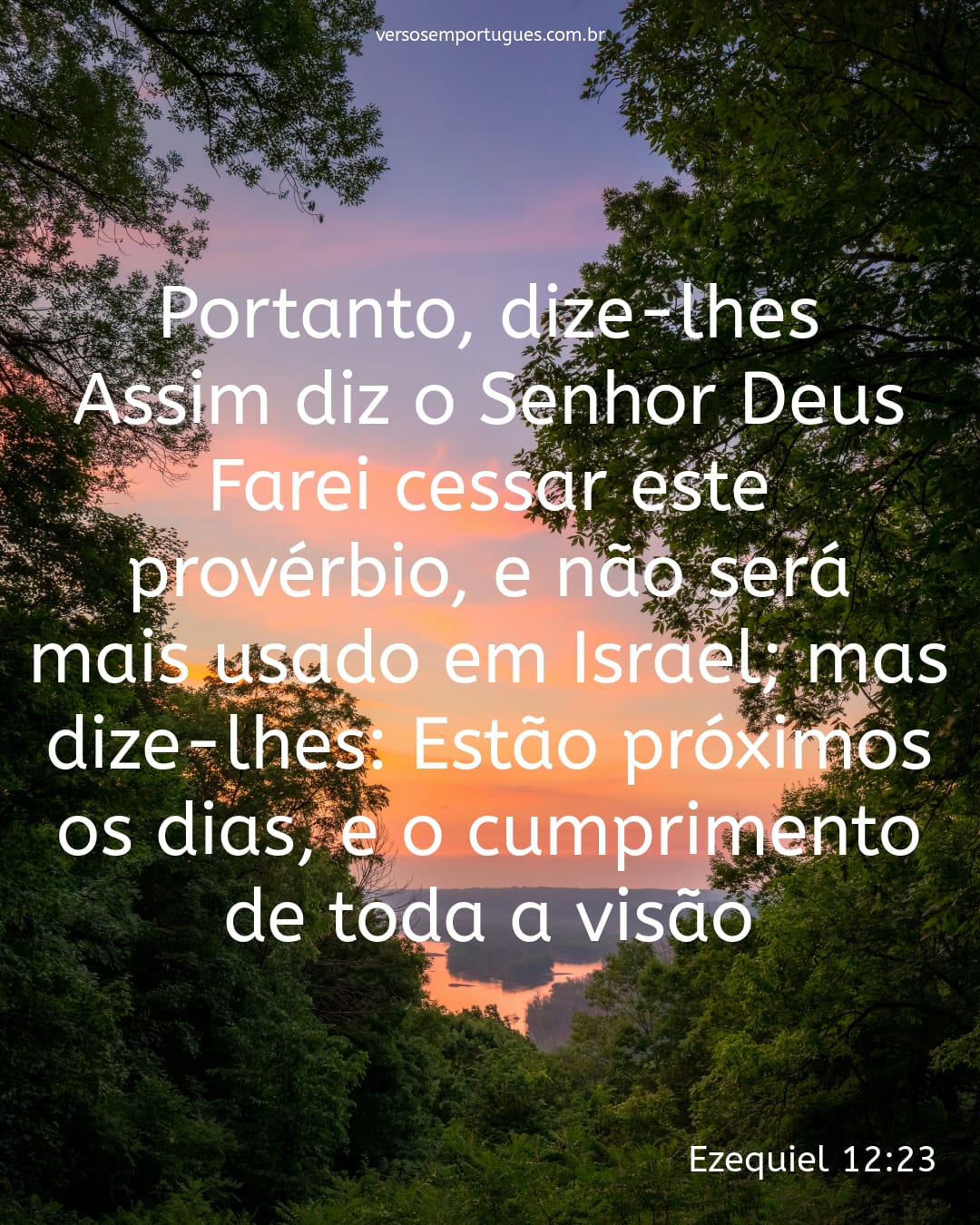 Portanto, dize-lhes: Assim diz o Senhor Deus: Farei cessar este provérbio, e não será mais usado em Israel; mas dize-lhes: Estão próximos os dias, e o cumprimento de toda a visão.