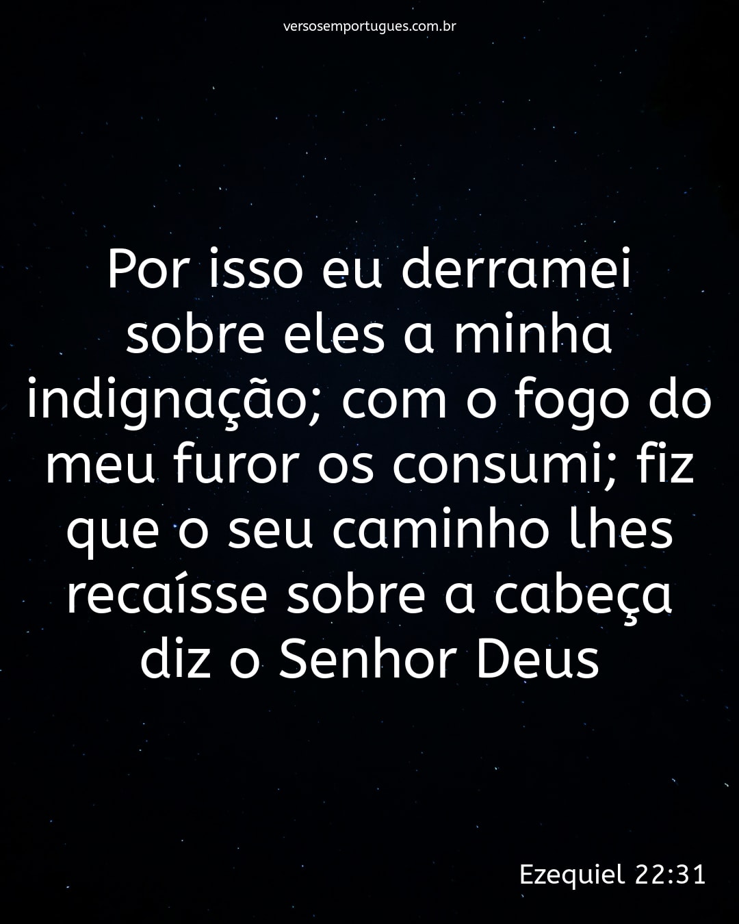 Por isso eu derramei sobre eles a minha indignação; com o fogo do meu furor os consumi; fiz que o seu caminho lhes recaísse sobre a cabeça, diz o Senhor Deus.