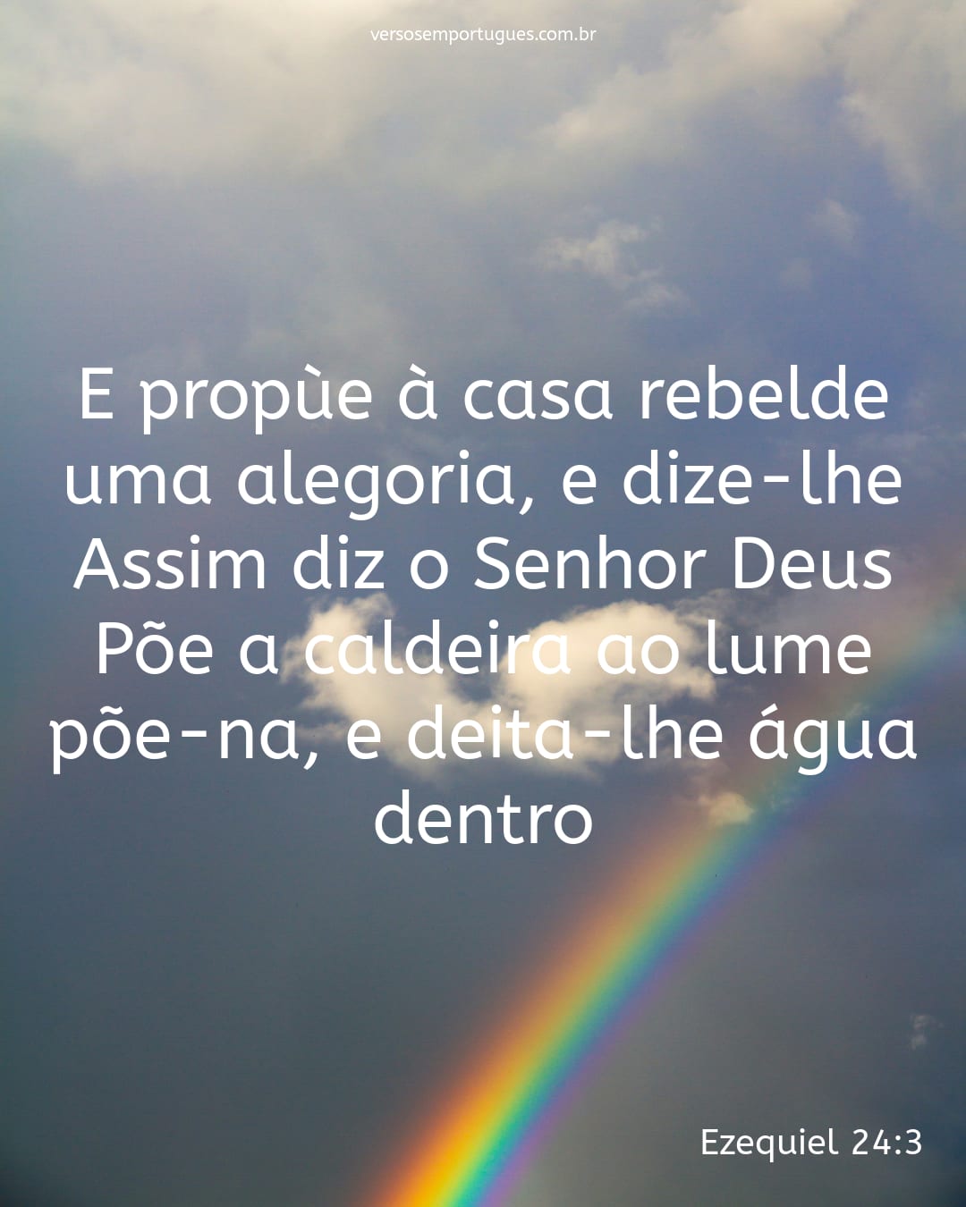 E propùe à casa rebelde uma alegoria, e dize-lhe: Assim diz o Senhor Deus: Põe a caldeira ao lume, põe-na, e deita-lhe água dentro;