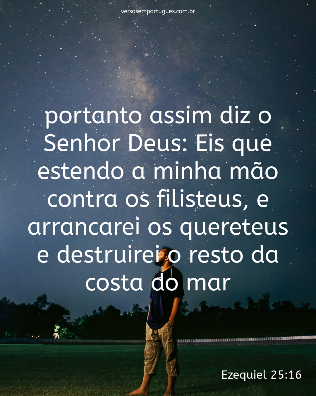 portanto assim diz o Senhor Deus: Eis que estendo a minha mão contra os filisteus, e arrancarei os quereteus, e destruirei o resto da costa do mar.
