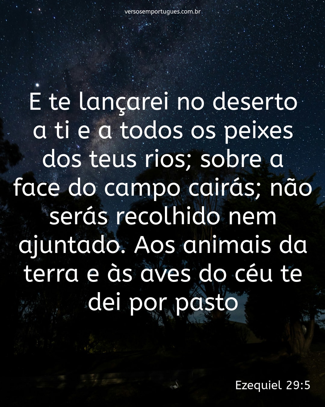 E te lançarei no deserto, a ti e a todos os peixes dos teus rios; sobre a face do campo cairás; não serás recolhido nem ajuntado. Aos animais da terra e às aves do céu te dei por pasto.