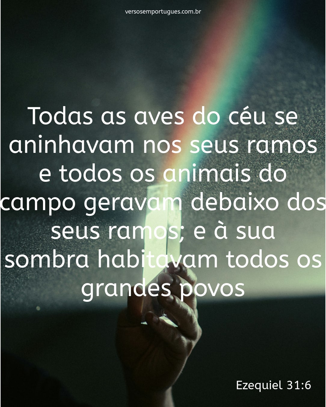 Todas as aves do céu se aninhavam nos seus ramos; e todos os animais do campo geravam debaixo dos seus ramos; e à sua sombra habitavam todos os grandes povos.