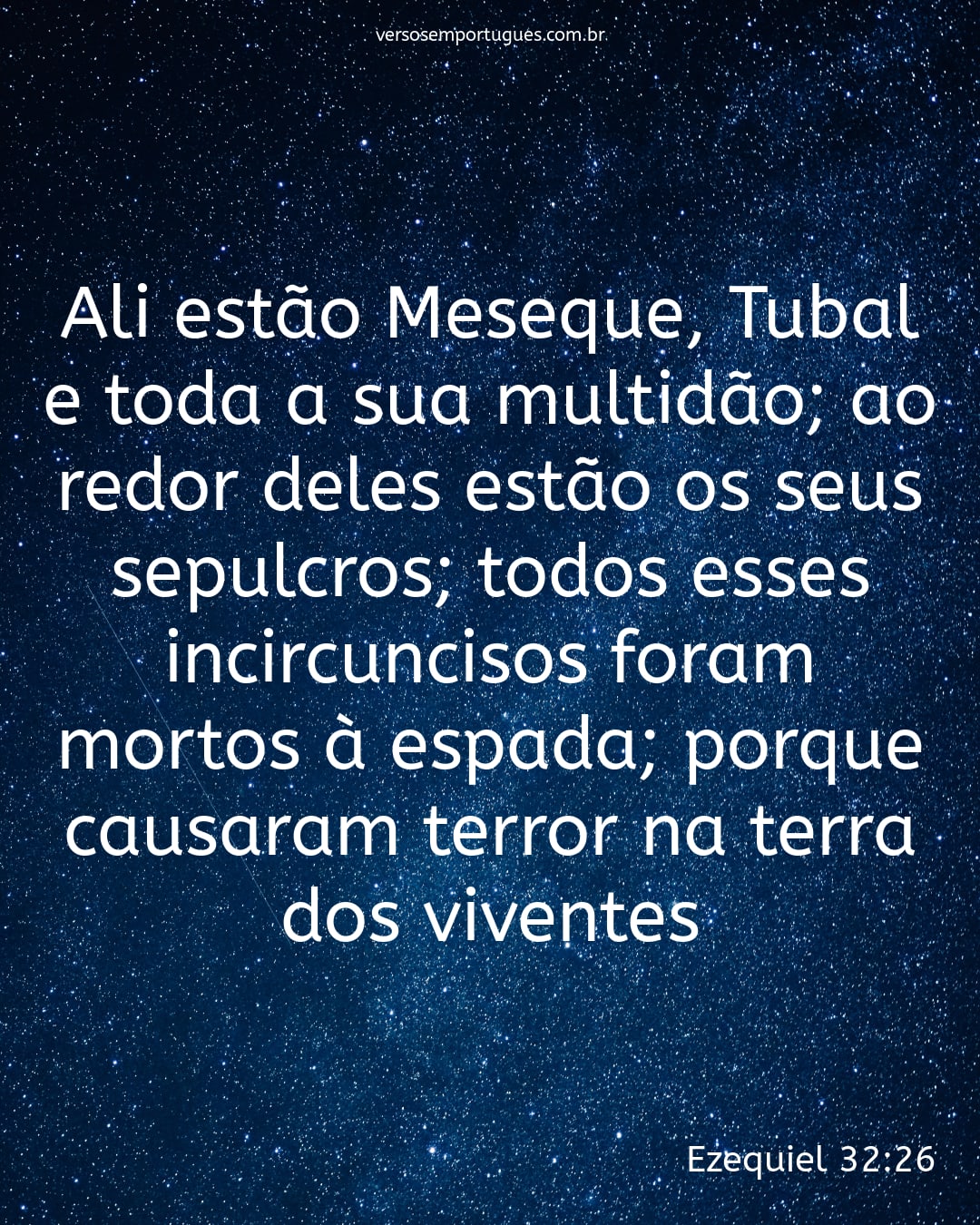 Ali estão Meseque, Tubal e toda a sua multidão; ao redor deles estão os seus sepulcros; todos esses incircuncisos foram mortos à espada; porque causaram terror na terra dos viventes.