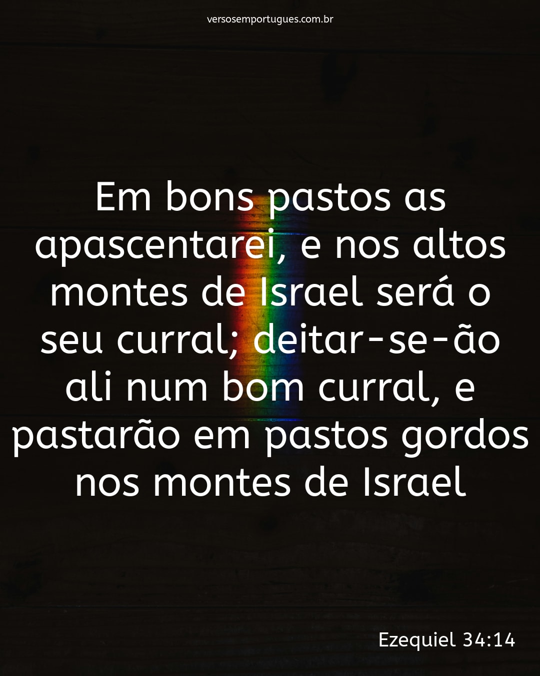 Em bons pastos as apascentarei, e nos altos montes de Israel será o seu curral; deitar-se-ão ali num bom curral, e pastarão em pastos gordos nos montes de Israel.