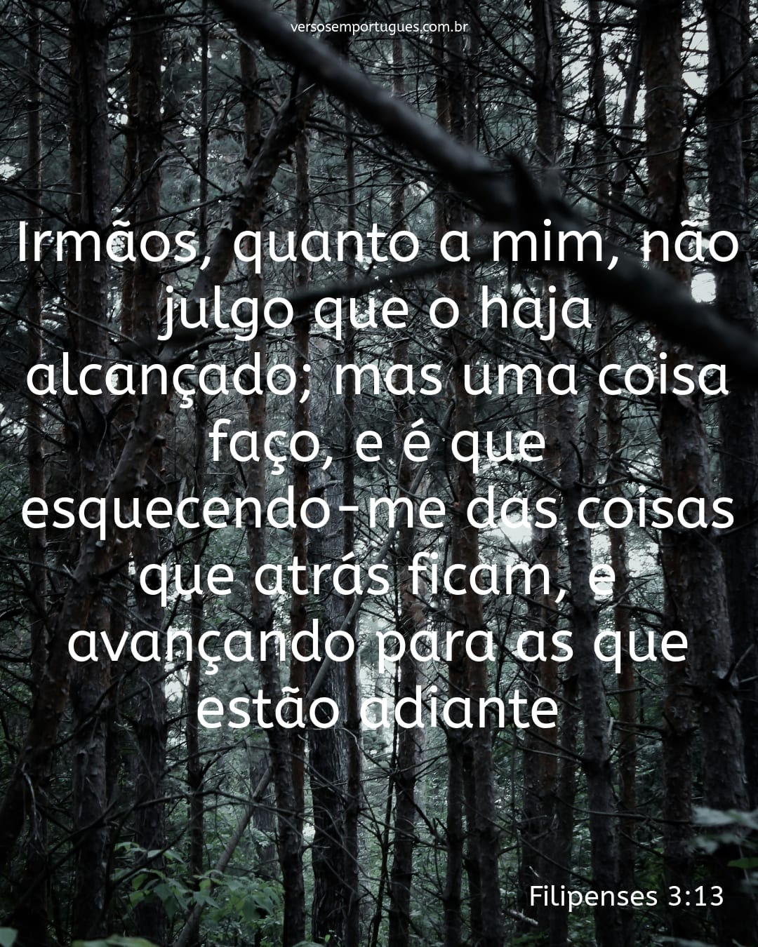 Irmãos, quanto a mim, não julgo que o haja alcançado; mas uma coisa faço, e é que, esquecendo-me das coisas que atrás ficam, e avançando para as que estão adiante,