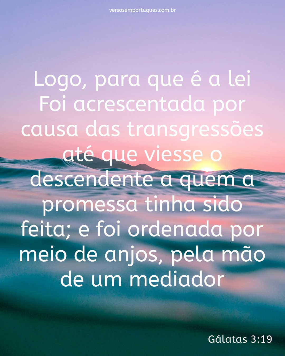 Logo, para que é a lei? Foi acrescentada por causa das transgressões, até que viesse o descendente a quem a promessa tinha sido feita; e foi ordenada por meio de anjos, pela mão de um mediador.