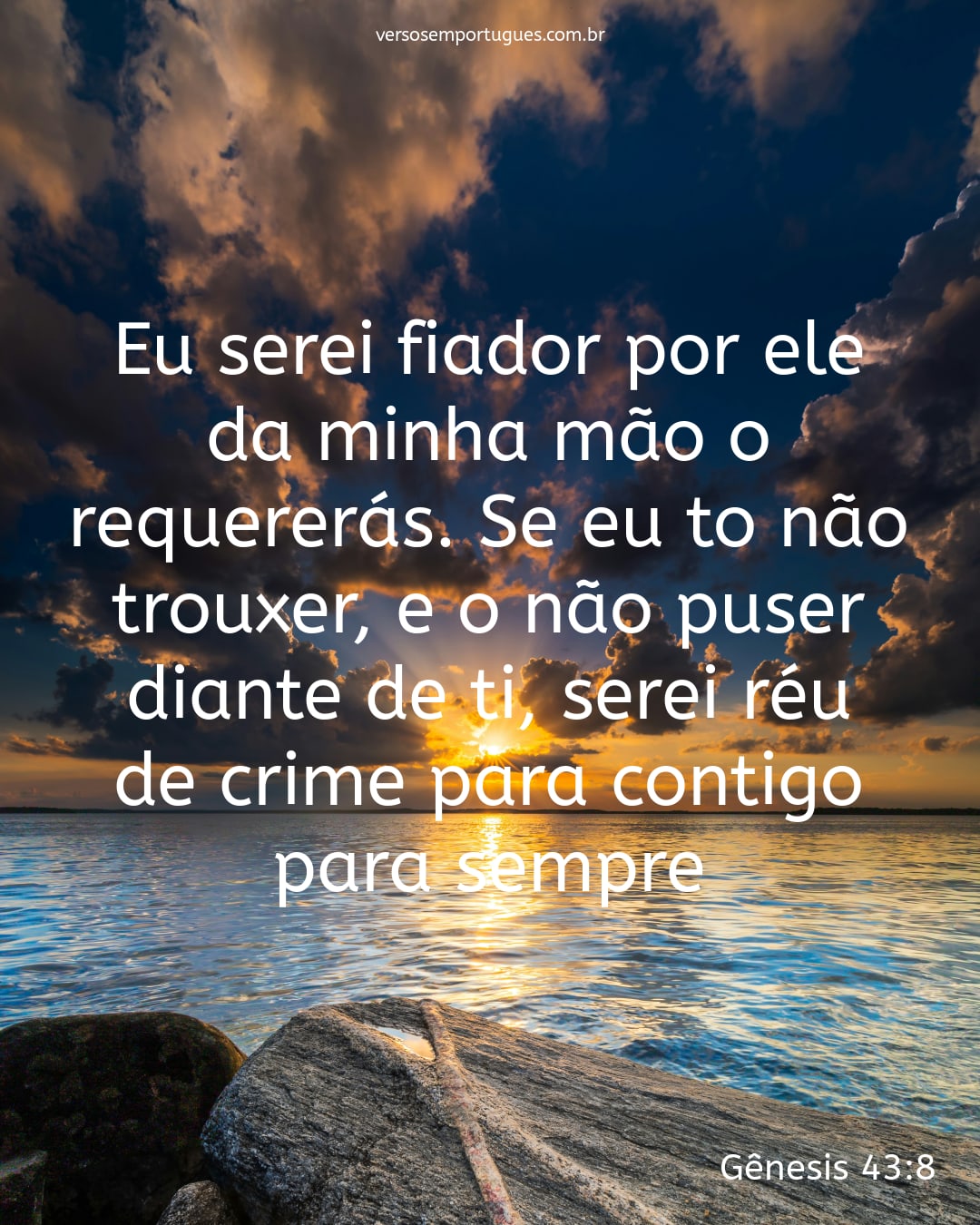 Eu serei fiador por ele; da minha mão o requererás. Se eu to não trouxer, e o não puser diante de ti, serei réu de crime para contigo para sempre.