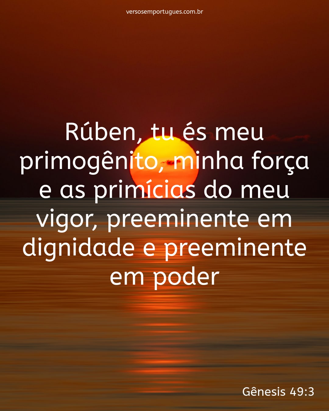 Rúben, tu és meu primogênito, minha força e as primícias do meu vigor, preeminente em dignidade e preeminente em poder.