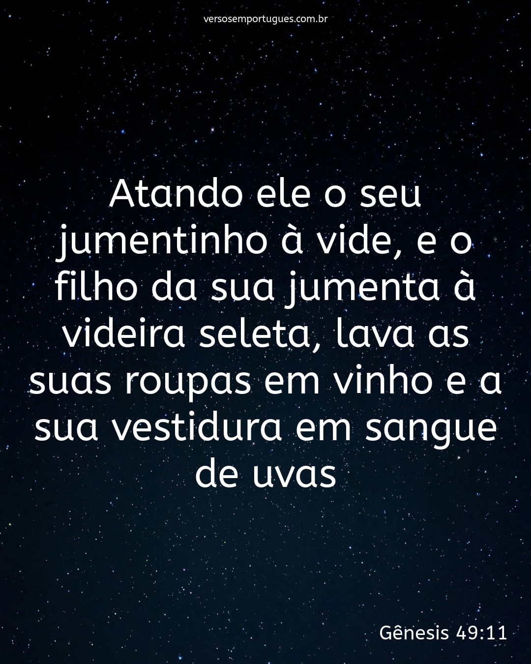 Atando ele o seu jumentinho à vide, e o filho da sua jumenta à videira seleta, lava as suas roupas em vinho e a sua vestidura em sangue de uvas.