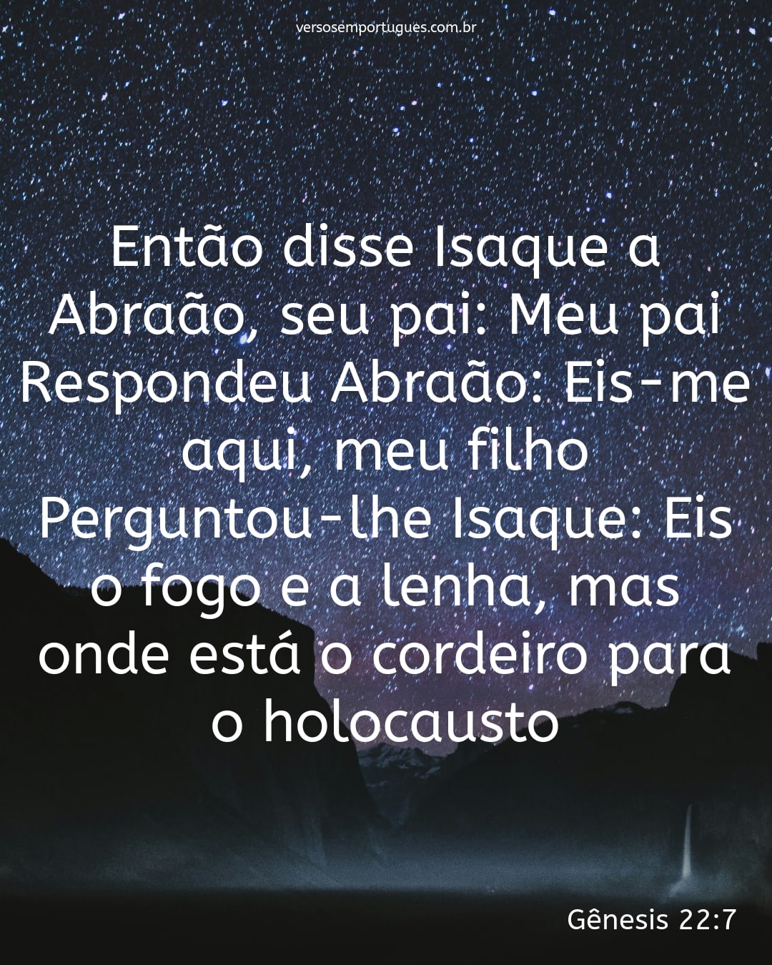 Então disse Isaque a Abraão, seu pai: Meu pai! Respondeu Abraão: Eis-me aqui, meu filho! Perguntou-lhe Isaque: Eis o fogo e a lenha, mas onde está o cordeiro para o holocausto?