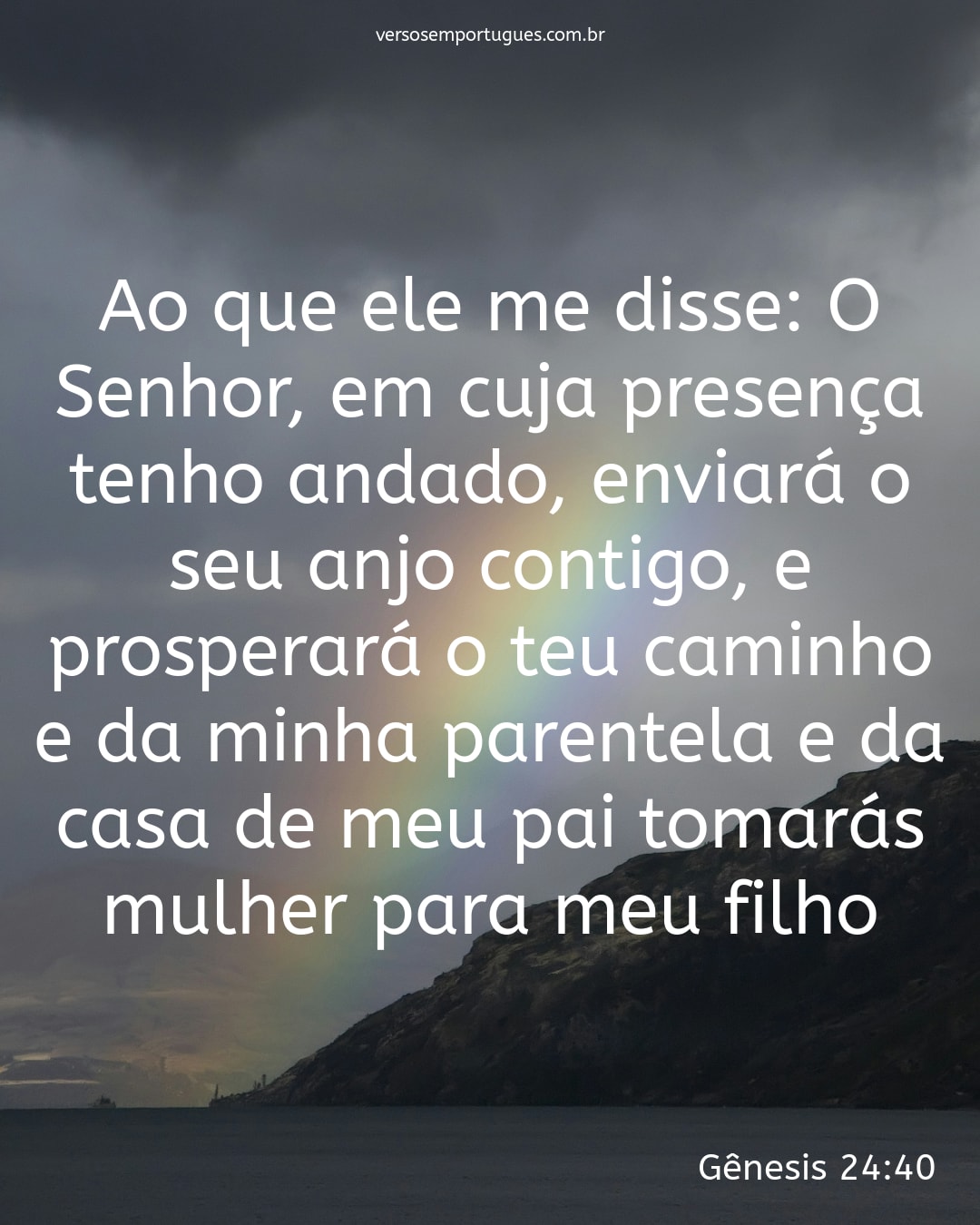 Ao que ele me disse: O Senhor, em cuja presença tenho andado, enviará o seu anjo contigo, e prosperará o teu caminho; e da minha parentela e da casa de meu pai tomarás mulher para meu filho;