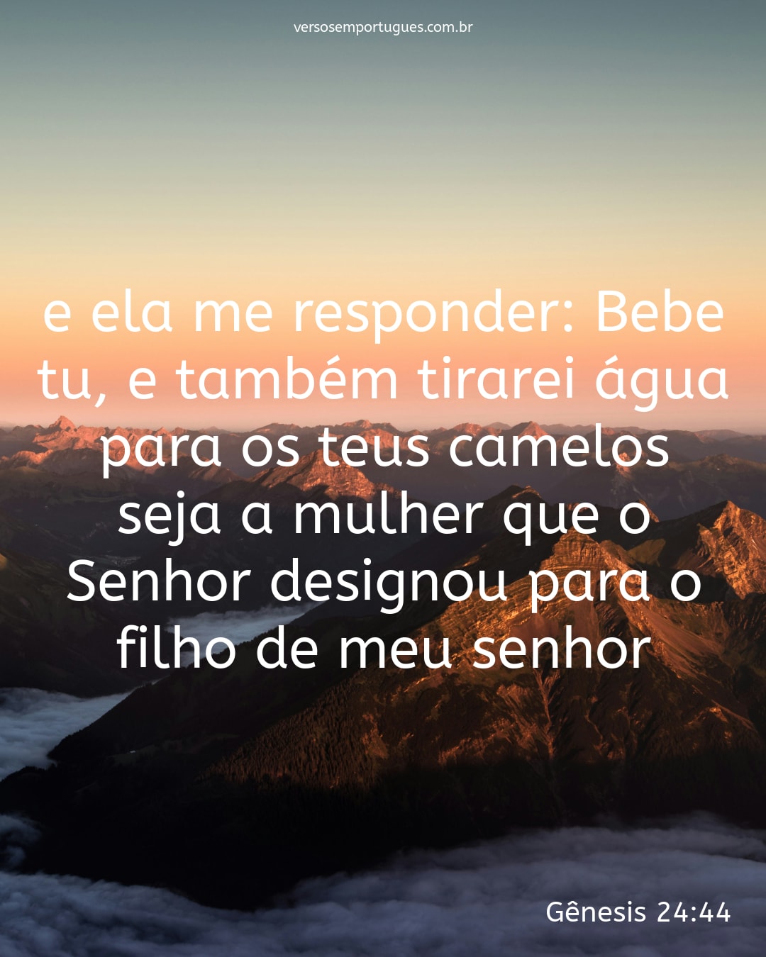 e ela me responder: Bebe tu, e também tirarei água para os teus camelos; seja a mulher que o Senhor designou para o filho de meu senhor.
